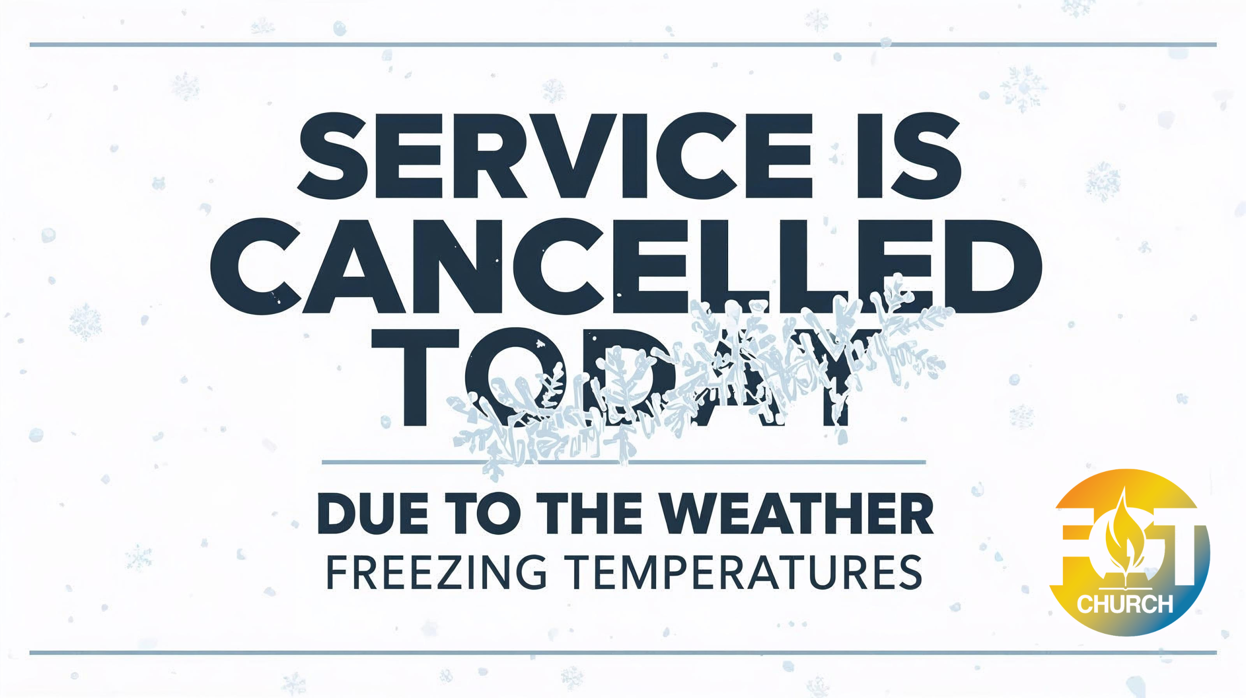 Service is Cancelled Today February 8, 2026 itsfgt Church updates Due to today’s weather conditions, our church service is cancelled for today, February 8, 2026.Please stay safe and warm. We look forward to worshiping together next week. Share This Twitter Facebook LinkedIn Email itsfgt